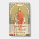 In this image done in the Beuron style of Benedictine art, St. Henry II (972-1024), Holy Roman Emperor, wears Imperial regalia—a crown, an ermine-lined vermillion red cloak over a teal robe, and carries a sceptre and orb symbolic of his temporal power. His crown, the Reichskrone, or Imperial Crown of the Holy Roman Empire, is a distinctive one comprised of eight hinged arch-shaped metal plates surmounted by a cross in the front with a high hoop connecting the front of the crown to its back. A layman and not a consecrated religious, nevertheless, St. Henry was known for his personal holiness practicing Benedictine values as an Oblate. St. Henry is patron saint of Benedictine Oblates as well as people rejected by religious orders, the physically challenged, and childless couples. + Feast: July 13 + Image Credit (BBS 10): Antique image of St. Henry II, Emperor, OSB [Order of St. Benedict], originally published in chromolithography by B. Kühlen, Mönchengladbach, Germany (Series Benedictina, Schola art. Beuron., unnumbered), late 19th-early 20th century, from the designer’s private collection of religious ephemera.