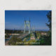 This postcard features the St Johns Bridge, a beautiful steel suspension bridge in Portland, Oregon that spans the Willamette River. Mt Adams and Mt St Helens can be seen in the distance.