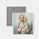 Beautiful vintage image of St. Joseph holding the child Jesus. A cross is in His hands and lilies on each side.