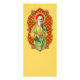 Customise the front for your church, school, or organisation and add your text to the blank back of this versatile hand-out. + Trade cards are a kind of early business card. Originally, they were printed only with text; later, pictures were added. In the late 19th-early 20th century, religious images appeared on trade cards alongside images of animals, vegetables, and minerals; historical figures and monuments; flowers and sundry other items or events. Trade cards were handed out as marketing tools or packaged as prizes with pharmaceuticals and candies as well as perfumes, meat products, tapioca pudding, and more. With an advert on the back and, more importantly, a vibrant image printed in chromolithography on the front, small wonder collecting trade cards became a hobby in the 19th century much like collecting bubblegum- and baseball trading cards would become later in the 20th. + One of the most popular sets of religious trade cards valued even by collectors today consists of twenty-four patron saints of professions. On such trade cards, a framed portrait of the patron saint is flanked by a representation of the relative tradesmen going about their tasks. Space permitting, the saint’s bio might even be printed on the back. + Though printed in Paris to advertise ‘Star Tapioca’ (Tapioca de L’Étoile), the St. Joseph in this example is clearly a variant of the aged St. Joseph, Patron of The Church, published as a devotional print by the Socièté de St. Augustin of Bruges, Belgium. (See our SAU 035 COLLECTION.) In fact, many of the saints in this series rely on Socièté de St. Augustin prototypes. In a less litigious age, the production of such derivative works was not uncommon. Not visible here are the carpenters (charpentiers) and slate-quarriers (ardoisiers) who labour under St. Joseph’s patronage. + In an ornate frame against a patterned backdrop of red and golden yellow, St. Joseph is clad in a yellow robe and green mantle. His hair has gone white. He holds an L-shaped carpenter’s rule emblematic of his profession in his right hand. In his left, instead of the more usual spray of white lilies of purity in full bloom, he holds a leafless stem of pink flowers that may be intended to represent spikenard. Spikenard is another flower associated with St. Joseph especially in Spanish-speaking countries. Given its funerary associations—spikenard was used in antiquity to anoint the dead—the flower may allude to St. Joseph’s approaching demise. In addition to his patronage of The Church and of artisans, St. Joseph is patron saint of the dying. He is invoked by the faithful for a happy and holy death. + The Year of St. Joseph: 8 December 2020-2021 December 8; Principal Feast: March 19; Feast of St. Joseph the Worker: May 1 + Image Credit (TC 01): St. Joseph, detail from an antique trade card in chromolithography, originally published by E. Pelletier & Cie, Paris, France, for Tapioca de L’Étoile, early 1900s, from the designer’s private collection of religious ephemera.