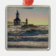 A mixed media photo of fierce waves crashing along St Joseph North Pier Inner and Outer Lighthouses in St Joseph, Michigan, United States.