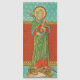 Here, a mature, grey-haired St. Joseph stands atop a globe in front of a red wall hanging with golden yellow trim and tassels. The tapestry is patterned with equal-armed crosses enclosed in rotated squares. How it is hung defies logical explanation because the background consists of an infinitely deep aqua-blue sky bespattered with stars. + St. Joseph is richly garbed in strong colours. His robe is red; his mantle, green with a dark aqua lining and golden yellow borders. He holds a spray of white lilies symbolising purity in his right hand and an L-shaped brown wooden carpenter’s rule indicative of his profession in his left. + Beneath St. Joseph’s sandaled feet are a small dragon, a crown, a scroll, and a globe inscribed with the names of the populated continents—Asia, Australia, (North and South) America, Africa, and Europe. The dragon and the scroll represent threats to the Church. The dragon signifies Satan; the scroll, heresies by being a précis of Blessed Pope Pius IX’s 1864 Syllabus of Errors, a document articulating 19th-century philosophical and political positions hostile to Catholicism. The scroll reads: Non serviam (“I will not serve”) / Atheismus (Atheism) / Odium Ecclesiae (Hatred of the Church) ~ S. Pontifice (The Pope) ~ Episcopi (Bishops) ~ Presbyteri (Priests) / Liberalism. The phrase “Non serviam”, that is, “I will not serve”, is attributed to Satan who rejected God and was banished from heaven. Atheism, Anticlericalism, and Liberalism are self-explanatory and were movements that shaped Pius IX’s policies, especially regarding the unification of Italy and its rise as a modern nation-state. The towering figure of St. Joseph stamps out heresy and tramples underfoot Satan’s power over the world by crushing the dragon beneath his feet toppling the crown from the dragon’s head. + A much more elaborate, near-contemporary variant was issued as a black and white lithograph. (Compare our DT 01.) Like the black-and-white litho, this chromo- or colour lithograph was published to promulgate Pope Leo XIII’s “Prayer to St. Joseph” of 1889. + Principal Feast of St. Joseph: March 19; Feast of St. Joseph the Worker: May 1 + Image Credit (VVP 09): Antique chromolithograph of Saint Joseph, Protector of the Church, Pray For Us [H. Jozef, beschermer der H. Kerk, B.V.O.] originally published by K[arel] v[an] d[er] Vyvere-Petyt, Bruges, Belgium, c. 1890, from the designer’s private collection of religious ephemera.