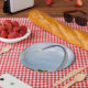 Paper plates featuring a photo of the St. Louis Arch.