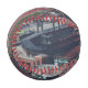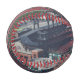 A baseball featuring a photo of St. Louis taken from the Arch.