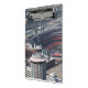 A clip board featuring a photo of St. Louis taken from the arch and a photo of the arch.