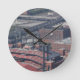 A clock featuring a photo of a St. Louis shot from the Arch.