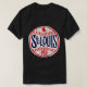 I give wanted to give this a 4 instead of a 5 because these Basic DARK T0shirts run unexpectedly SLIM or Narrow. Which is great if you do not have a potbelly, but I have a paunch. It isn't the shirt's fault that I've got a beer belly. The design and shirt itself is a quality cotton shirt. The color is more of a deep purple, but still a very pretty color. The Basic DARK T-shirts run a bit SLIMMER than the Basic Ts. The neck is a fraction narrower (or seems to be narrower) also. I'm a paunchy middle-aged woman and my neck is 12 inches (31cm) thick and the neckline fell about the same as in the photo of the man, and I had the desire to tug it a bit. So if you're a thick necked man or like loose shirts, be aware these are slimmer shirts. Once I get rid of my lockdown paunch it'll look great. The shirt washed well in cold water with no apparent bleeding. We don't have a dryer, so it hung dry. Did not shrink. Love the colors and the design. The design looks smaller on my shirt than it does on the model on-line. But still, it looks good on the shirt. The printing looks as it does on the model, just the size seems fractionally smaller. Washed garment in cold water, hung dry and design appeared unaffected.