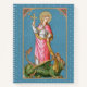Waiting for baby? Journal your thoughts as you anticipate the blessed event in this lovely notebook featuring St. Margaret on the covers! + According to tradition, St. Margaret (or St. Marina the Great Martyr) laid down her life for Christ during Diocletian’s persecution at the beginning of the fourth century. Though a famous virgin martyr, ironically she is patron saint of expectant mothers and women in labour. The devil in the guise of a dragon, as this unusual patronage’s origin story goes, swallowed her whole. However, the cross she was carrying so irritated the dragon’s innards that he either egested her or ruptured to be rid of her. While even Mediaeval popes and hagiographers deemed this story fanciful, nevertheless, it was embraced by the laity and by artists if only for its symbolism. And, the cross and the dragon have been her principal attributes ever since. + This image of St. Margaret is particularly fetching. The saint, whose beauty was legendary, stands on the back of a large green dragon that tugs at her cloak with its teeth. She is crowned with a garland of roses, her long blonde hair flowing over her shoulders. She wears a bright pink mantle over a white tunic against a blue background patterned with little white dots and stars. + This product line emphasises St. Margaret’s patronage of pregnancy and childbirth. The dominant pink and blue colour scheme ties in well with the modern custom of using these colours for girl and boy babies. The mantle’s golden yellow lining allows for a gender-neutral theme. + Feast: July 20 +