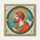 St. Matthias (1st century) was chosen by lot in the interim between the Ascension and Pentecost to replace Judas Iscariot as an Apostle. Traditions vary somewhat about his post-selection ministry but agree that he suffered martyrdom. Here, he shoulders an axe as its instrument; in other representations, he may carry a spear or halberd. [See also St. Matthias the Apostle COLLECTION (RLS 11).] + Feast: May 14 + Image Credit (JMAS 09): Antique image of St. Matthias the Apostle from a late 19th-century devotional print in chromolithography with gilt accents originally published by Josef Müller, Art Publisher, Munich, Germany, from the designer’s private collection of religious ephemera. The image is one of twelve in the publisher’s Apostle Series (No. 12155).