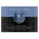 St. Michael the Archangel is centred on a shield. Blue and black background further emphasise the protection and guardianship of this saint. A prayer to St. Michael is written on the front of the gift, souvenir, giveaway or party essential. Let someone know you are thinking of them and praying for them. St. Michael image by Michael Jaletzke through CC 3.0 at Wiki