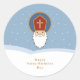 St. Nicholas Day Sticker (celebrated at the beginning of December in Europe) with a blue light background and snow. Add them to your gifts, package or letters!