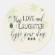 Saint Patrick's Day sticker depicts an abstract green background. It features an Irish Blessing, "May love and laughter light your days."