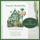 Featuring a darling St. Patrick's Day card with a whimsical image of St. Patrick standing next to his cottage in ireland.
