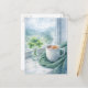 A calm and cozy watercolor postcard for St. Patrick’s Day. A warm cup of tea on a rainy windowsill, a soft green blanket, and shamrocks in a small glass vase create a quiet Irish mood thoughtful, peaceful, and sincere. Perfect for Postcrossing, pen friends, or sending gentle St. Patrick’s Day wishes without crowds, noise, or clichés. An ideal choice for those who love Ireland’s atmosphere, slow moments, and meaningful connections.
