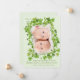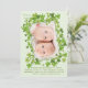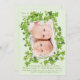 Send your St. Patrick's Day wishes along with this beautiful, seasonal, photo birth announcement featuring a frame of shamrocks with a light green background and white polka-dots. (FP)