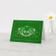 Elegant St. Patrick's Day card on green background. Contemporary abstract design with shamrocks and scrolls. Illustration © Teri Francis. Matching postage stamps, t-shirts, and gifts available in gallery.