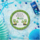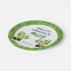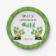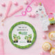 Celebrate your little one's first birthday with this Irish themed party paper plate featuring leprechauns lounging on pots of gold with shamrock balloons on a green argyle pattern background. Easy to personalise with custom options.