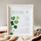 Bar sign with fun green shamrocks and leprechaun hat for a "St. Patrick's Day" themed Bridal Shower.