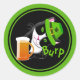 St. Patrick's Day Cat for St. Patty's day celebrations, cat lovers and beer lovers. Cute, funny, burping tuxedo cat loves his beer. Enjoy the Irish Feast of Saint Patrick perhaps in Ireland. Great gift idea for birthdays. Cheeky black and white kitty loves St.Paddy's Day and ale. Cat moms and dad will love to wear at pubs, bars, club, religious celebrations, and parties. Cat wears a green hat, a shamrock and buckle, with beer mug, and is burping. Fun and jokes with this.