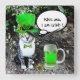 "Kiss me I'am Irish " Funny and whimsical Saint Paddy's Day design .Cat Ronin is sitting in the garden with Leprechaun hat ,shamrock and bow tie with a cup of beer . Photo ,digital collage and graphic design by Bulgan Lumini (c)