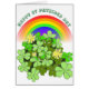 This editable St Patricks Day greeting card features a fresh green clump of clover with a colorful rainbow.