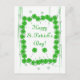 Postcard with my bright design of four-leaf clovers and pretty stars and streamers. Text says "Happy St. Patrick's Day!"