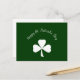 St. Patrick's Day simple green postcard, with a shamrock design and script typography lettering. A cute way to send Happy St. Patrick's Day wishes.