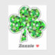 A lovely green pattern of Irish shamrocks with white flowers on a black background decorating a single shamrock. This pretty design adds a wee bit of Ireland to your St. Paddy's Day celebration! Shown here on a custom die-cut sticker with two background options. Use them to decorate a scrapbook, card, and more! Customise them any way you like and select from several sizes from tiny to large!