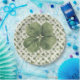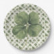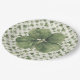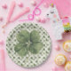 These whimsical St Patrick's Day paper plates features a watercolor four leaf clover with a coordinating green and white gingham background.