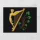 St Patrick's Day Gold Harp and Shamrocks Postcard