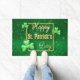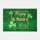 Elegant golden glitter glamourous St. Patrick's Day illustration featuring 3d gold typography inside a gold glitter border with classy shamrock clover on a precious green background.