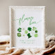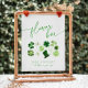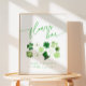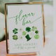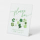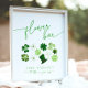 "Flower bar - make a bouquet to take on your way" sign with green shamrocks for a Bridal Shower St. PAtricks Day theme: