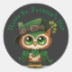 The "St. Patrick's Day Green Owl Personalized Classic Round Sticker" features a whimsical design that combines the enchantment of St. Patrick's Day with the adorable presence of an owl. Adorned with a green owl illustration, this sticker adds a festive touch to any surface.