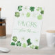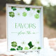 Elevate your bridal shower with our modern Favors Sign with fun green shamrocks. Perfect for a St. Parick's Day themed Bridal Shower, this decor piece adds a touch of elegance to your celebration.