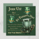 Three cute Leprechaun top hats adorned with cute bows and clovers cover the front of this customisable St Paddy's Day party invitation. Add all your details for your friends, neighbours and family and celebrate all things Irish. The reverse of this card is a mint green.
