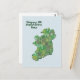 Postcard for St Patrick's Day. Map of Ireland created in stamps. Green.