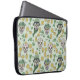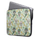 This unique hand-drawn "Happy St. Patrick's Day" laptop sleeve features a fun pattern of an Irish sugar skull couple wearing Irish hats and scarves, surrounded by Irish more sugar skulls, clovers, and shamrock gold coins. All against an elegant light green background.