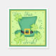 Throw a St. Patrick's Day birthday party with these fun paper cocktail napkins that matches coordinating paper plates. The design is a traditional St. Patrick design and original art by Phyllis Dobbs. The art is a trendy and fun design with shamrocks on top of a top hat with gold buckle surrounded by the words "Its fun to be Irish!". The backround is light lime green with an emerald green border with a wavy stripe. Fully customisable for a St. Patrick Day birthday party celebration.