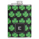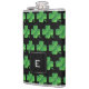 St Patricks Day Lucky Shamrock Pattern Monogram Hip Flask