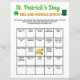 St. Patrick's Day Mix and Mingle Bingo is a party game. Find someone who matches the descriptions and write their name in the box. Don’t use the same name in more than two boxes. First person to get two BINGO wins!