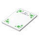 St Patrick's Day notepad with green lucky clovers design. Custom memo writing note pad for bar, pub, club, restaurant, business, shop, store etc. Personalise with your own company name optionally. Also fun for home or school.