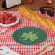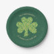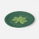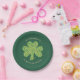 These custom Saint Patrick's Day (St. Paddy's Day) party plates feature a Kelly green background and a shamrock made of green, white and gold confetti. Customise these fun plates with your name and the event name. A festive complement to your Irish party display. Matching napkins, invitations and postcards available at: www.zazzle.com/grandviewgraphics