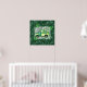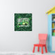 t. Patrick's day watercolor clovers and vintage farmhouse plaid green truck loaded with white flowers on distressed weathered green wood with emerald green animal print background.