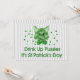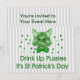 He's mangy, green and wearing a bow tie. He's the St Paddy's Day scrapper cat and he says "Drink up Pussies, it's St. Patrick's Day."
