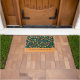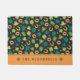 Festive St. Patrick's Day doormat features a fun pattern of four leaf clover shamrocks, lucky golden yellow horseshoes, leprechaun hats, green beer and orange Irish kisses. Personalise with your family name along the bottom, optionally embellished with shamrocks on either side.
