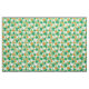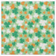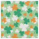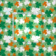 Shamrock fabric with a pattern in green, orange, and white with clovers.