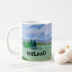 This St Patrick's Day mug is decorated with an landscape in shades of green, blue and gra.y