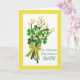 St. Patrick's Day greeting card for a special babysitter. Cheerful and colourful design of three-leaf clovers, sprigs of yellow forsythia and pussy willows on branches all tied up in a springtime bow (not real). Art, image, and verse copyright © Shoaff Ballanger Studios, 2021.