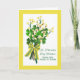 St. Patrick's Day wishes from our home to yours. Yellow flowers and shamrocks in various shades of green tied together with a faux yellow, green and white polka dot bow. Customise the inside of the card as you like before purchase. Art, image, and verse © Shoaff Ballanger Studios, 2021.