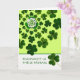 Beannacht Lá Fhéile Pádraig. Happy St. Patrick's Day greetings in Irish Gaelic written on the cover. English verse inside can be changed or customised. Shamrock corsage floral design. Paper greeting card with customisable interior areas for text and photo if desired. Art, image, and verse copyright © Shoaff Ballanger Studios, 2021.